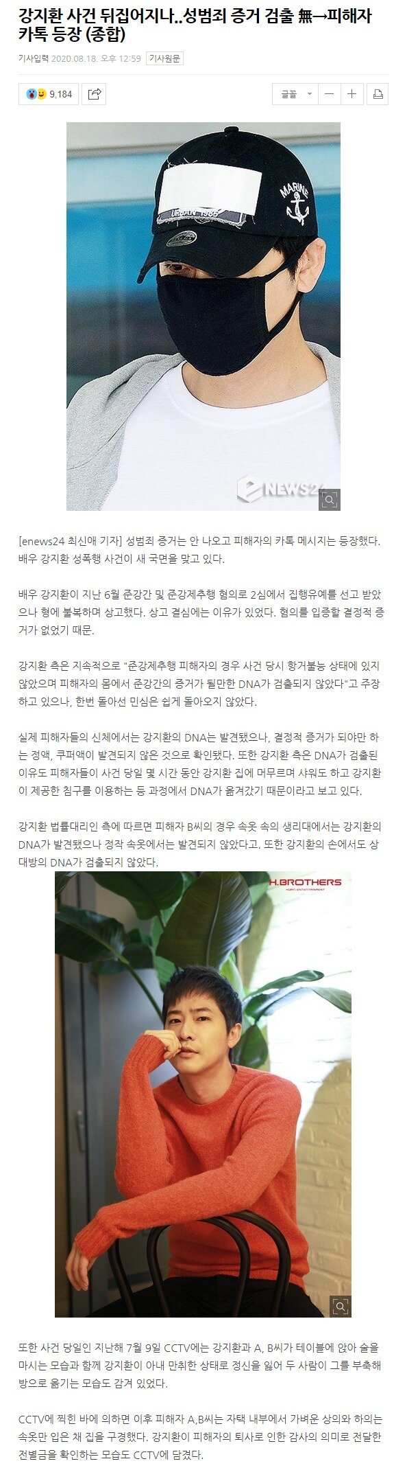 강지환 측은 지속적으로 "준강제추행 피해자의 경우 사건 당시 항거불능 상태에 있지 않았으며 피해자의 몸에서 준강간의 증거가 될만한 DNA가 검출되지 않았다"고 주장하고 있으나, 한번 돌아선 민심은 쉽게 돌아오지 않았습니다.