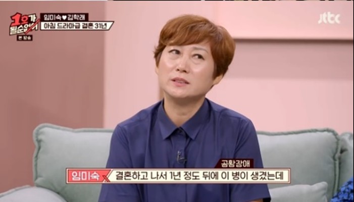 임미숙은 "결혼하고 1년 후에 공황장애가 생겼는데, 그 땐 공황장애라는 말도 없었다"며 "병원에 가도 병명을 모르니 10년간 말도 못하고 교회에 가서 매일 울었다"고 털어놨습니다.