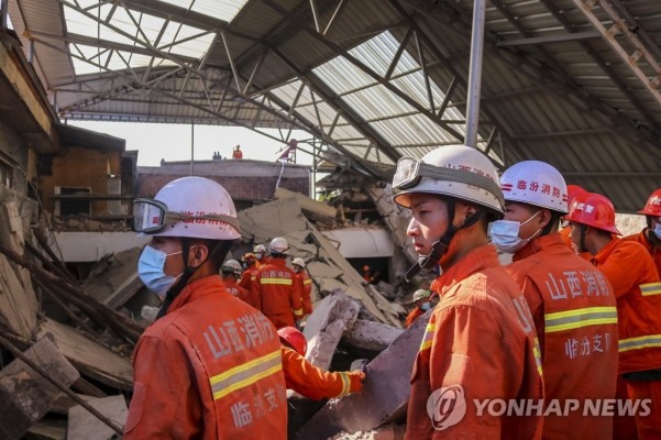 중국 산시성 식당 붕괴사고 현장서 구조작업 (린펀 EPA=) 중국 북부 산시(山西)성 린펀(臨汾)시 샹펀현의 2층 식당 붕괴사고 현장에서 29일 구조작업이 진행되고 있습니다.