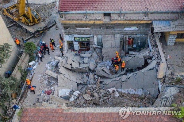 중국 산시성 린펀 식당 붕괴사고 현장 (린펀 AFP=) 중국 산시(山西)성 린펀(臨汾)시의 식당 붕괴사고 현장에서 29일 구조대원들이 수색작업을 벌이고 있습니다.