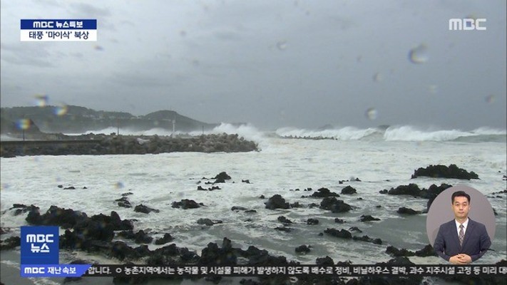 기상청은 2일 오후 3시 기준으로 마이삭이 서귀포 남남동쪽 약 190㎞ 해상에서 시속 19㎞로 북북동진 중이라고 밝혔습니다.