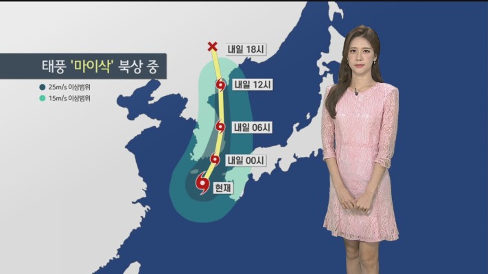 고은지 = 제9호 태풍 '마이삭'이 3일 새벽 1시께 거제와 부산 사이에 상륙할 전망입니다.