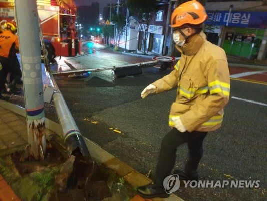 제9호 태풍 '마이삭'의 영향으로 현재 부산은 건물 외벽이 뜯기거나 가로수가 쓰러지고 정전이 되는 등 피해가 잇따르고 있습니다.
