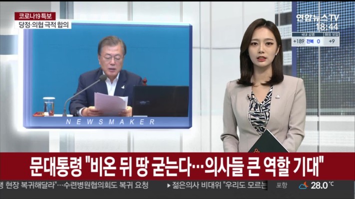 김범현 임형섭 = 문재인 대통령은 4일 정부의 공공의료 확충을 둘러싼 여권과 의료계의 갈등이 봉합된 것에 대해 "비 온 뒤에 땅이 굳는다는 말이 있다"며 "우리 보건의료 체계를 한 단계 발전시키는 기회가 됐으면 한다"고 말했습니다.