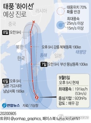 태풍 '하이선' 6∼8일 강한 비바람 기상청 .
