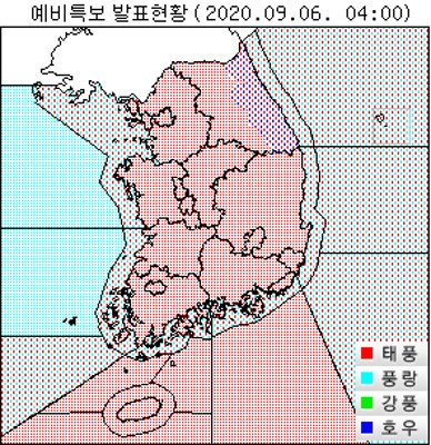 데일리그리드=정진욱 기상청이 6일 04시 태풍 하이선 북상에 따른 태풍 예비특보를 발표했습니다.