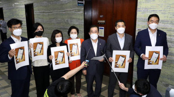 박대출 국민의힘 의원은 이날 1에 찍힌 윤영찬 의원 스마트폰 문자 장면을 A4용지로 인쇄해 한 손에 흔들며 “마음에 안 든다고 포털 관계자를 호출할 수 있는 권리는 누구에게도 없다”고 말한 뒤 “왜 포털이 여당에게 기울어진 운동장이었는지 의문이 풀렸습니다.