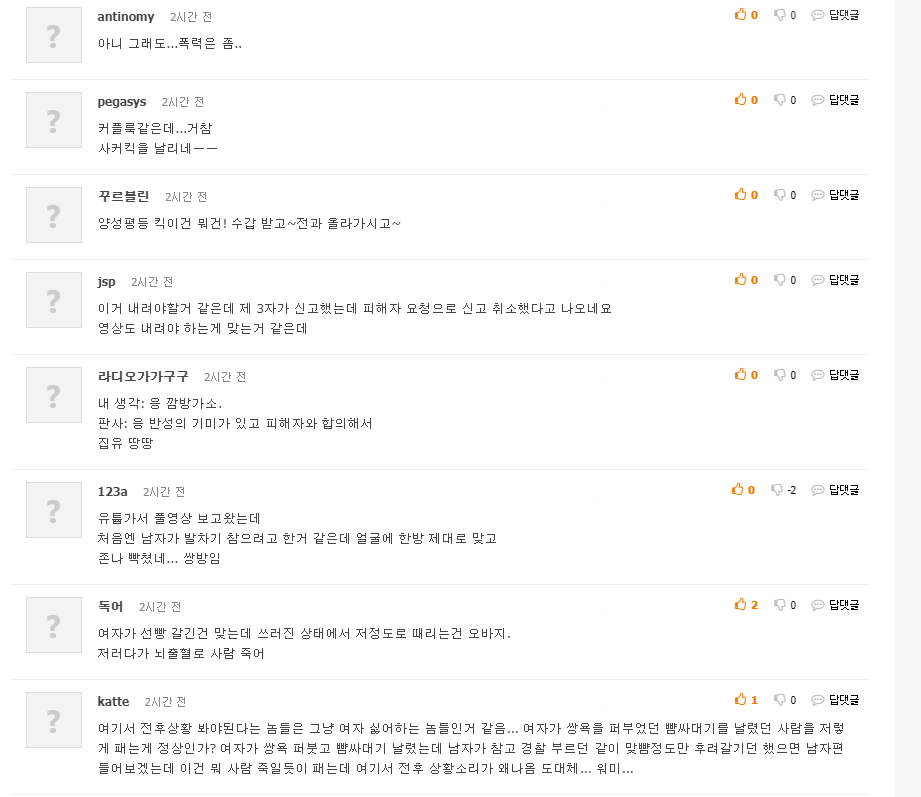 현재 한 누리꾼에 의하면 서로의 남성이 이렇게 무차별 폭행한 이유로는 서로 사소한 문제로 다툼을 하다가 여성이 먼저 뺨을 떄려서 욱해서 저렇게 무차별 폭행을 한것으로 전해 지고 있습니다.