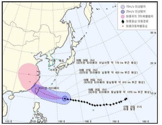 이후 일본 가고시마 부근 해상을 지나 다음 날인 7일 새벽 경남 남해안을 상륙할 것으로 예상됩니다.