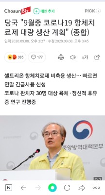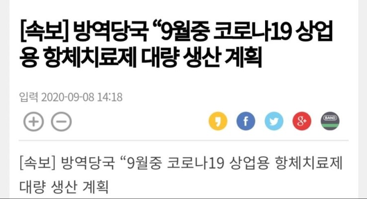 권준욱 중앙방역대책본부 부본부장은 이날 오후 정례브리핑에서 "항체치료제의 국내 경증환자 대상 임상 1상은 지난 8월 25일 승인을 받아서 현재 환자 모집 중"이라며 "식약처에서 2·3상 임상시험계획을 심사 중으로 9월 중 상업용 항체치료제 대량생산을 계획하고 있다"고 말했습니다.